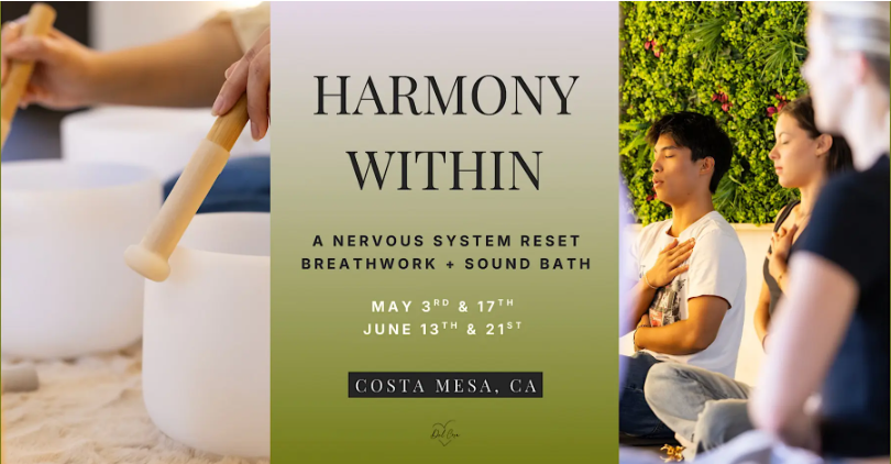 Through mindful practices like conscious breathing and a sound bath, you’ll be gently guided back to your center, restoring a sense of calm, clarity, and inner harmony.